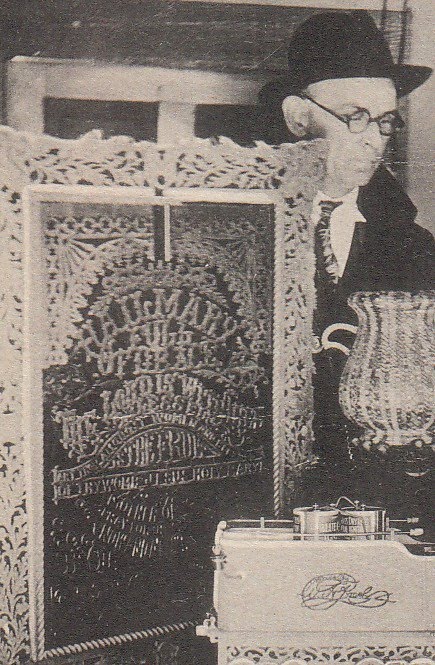 Watch me cram a ton of information into one post, both visual and textual! Some of you know I collect real photo postcards of folk artists at work or showing their wares, and in fact recently published a book with over a hundred illustrated. IN-SITU: American Folk Art in Place by Jim Linderman. Well, here is a splendid example of "Hand Scroll Work" by one W. H. Roach from Gretna, Virginia. I show it now for several reasons. One, the giant Fretwork prayer he carved, seen here on his right, is up for auction at the Slotin Folk Art Auction in Atlanta on May 1-2. I love Steve Slotin and his family, and am pleased to give them this little plug, as well as share the image. The actual piece is lot number 662, and a splendid item it is, especially now that I have identified the goofy maker for you all! I hope the winning bidder finds this post one day.