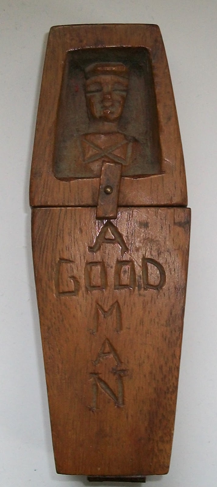 Make Do Wall Hanging Candle Box with two inscised relief carved Nudes Erotic Folk Art