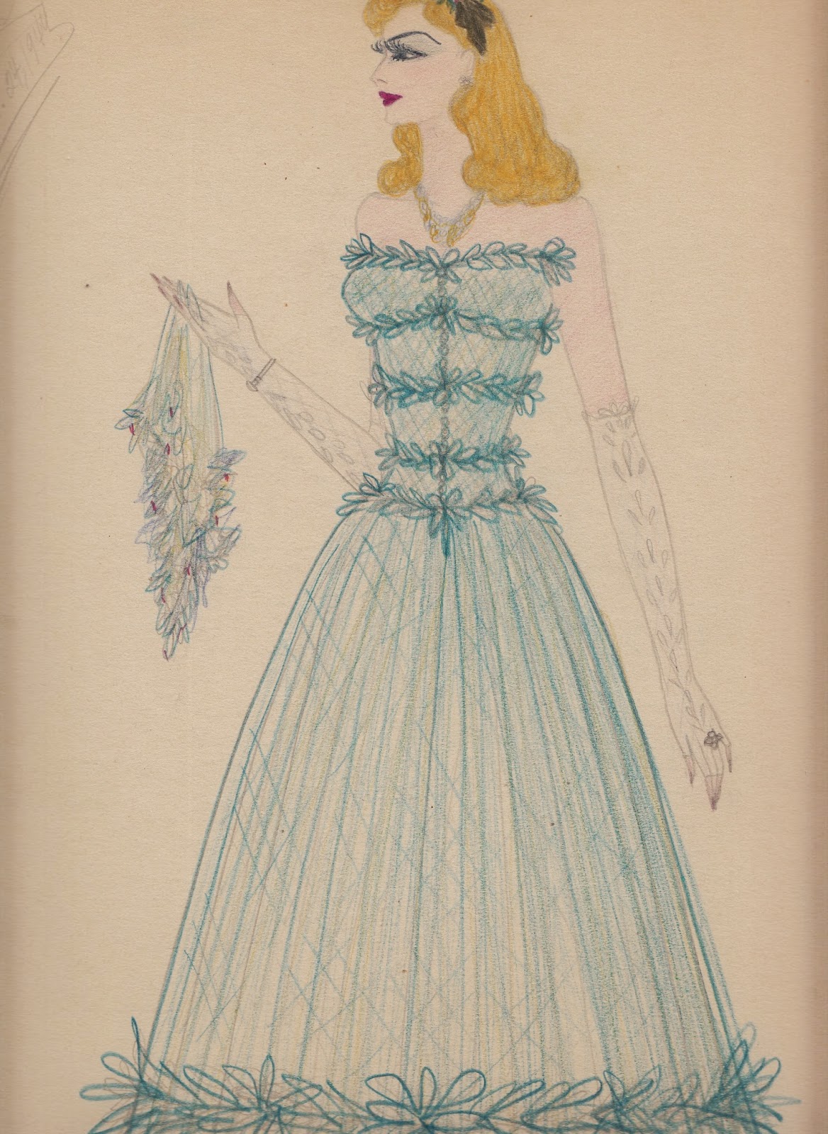 Eccentric Fashion Drawings 1944 (all detail scans) Each 10 x 15 Collection Jim Linderman