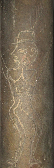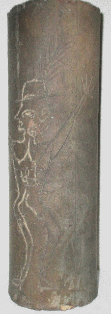 Antique Folk Art Sculpture Sewer Tile Man with a Feather in his Cap (and what appears to be his boss's head in his hand) End of Day Work, usually items like this were produced after a long day. In this case, the worker may be taking revenge on his boss. Circa 1900 Collection Jim Linderman Dull Tool Dim Bulb