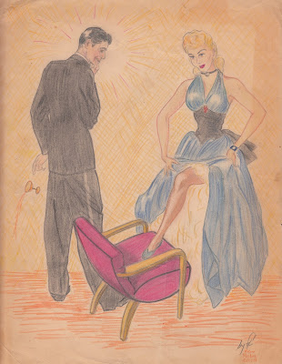 November 16, 1941 Rubber Stamp Hair. Caption "Ever see a dame with nothin' but dates on her mind?" Drawing by Willard Fitzgerald 1941 Collection Jim Linderman