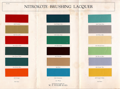 Don't paint it, NITROKOTE it! W.P. Fuller put out Nitrokote in the early 1900s. Fuller was the largest paint supplier on the West Coast. I guess you could say he was the Fuller Brush Man with a painting brush. Today when you see old paint on furniture and objects from the Pacific coast, it might have been Nitrokoted!
