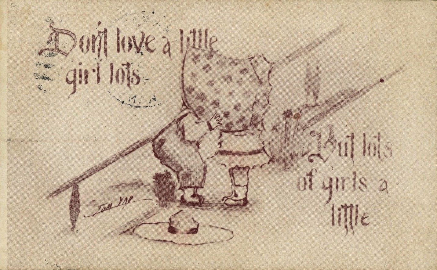 Forgotten illustrator Cobb Shinn! The first image is a heavily embellished postcard from 1913. It is most unusual to see a painting added to a printed postcard, but this is certainly one of the craziest..the reverse is odd too, but I'm not scanning it. An original card is shown below it. Tom Yab drew Yab's Kids, but so much more...and the best place to learn about him is on the Tattered and Lost website HERE. It's great.