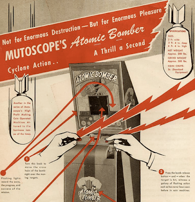 Let's take a minute to thank the International Mutoscope and Reel Company! No one provided better value for your time and your dime. Photomatic photographs are but one example of their product line, but the one which is the most fun.  An early robot with an eye.  The company also had the horrible taste to produce "The Atomic Bomber" in 1946, unfortunately. They called it "timely" as the radiation hadn't yet dispersed.