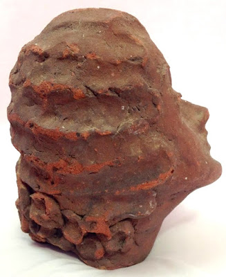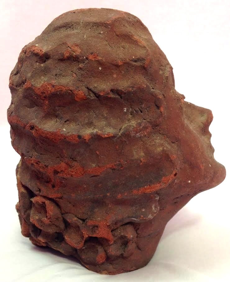 Sewertile Brick Clay Head of a Woman End of Day Folk Art Pottery Sculpture. 19th Century. The figure appears to have been built up over shards and leftover materials. Collection Jim Linderman