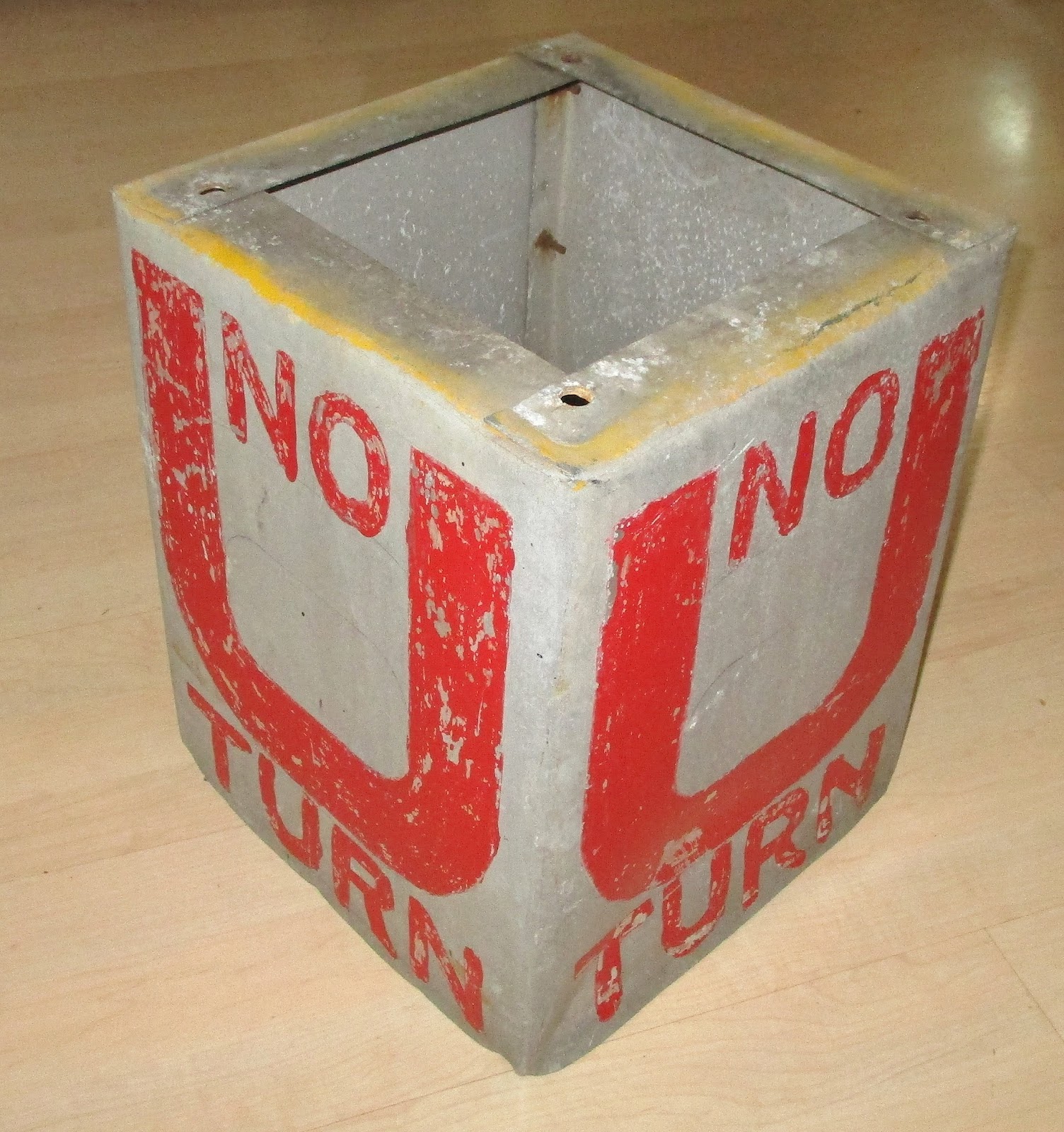 4 Way Hand painted sign NO U TURN Galvanized Steel