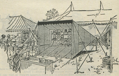 Hit the Baby!  Illustrations of Carnival Ball Toss Knockdown and Shooting Gallery tents once available from the Anchor Supply Company.  No Date.