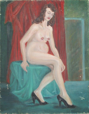 Amateur "Sunday Painter" Pregnant Woman c. 1950 On reverse "Kraus" 16" x 20" Collection Jim Linderman