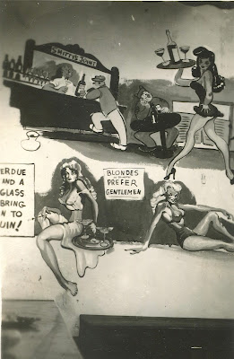 Love During Wartime #5 Hand-painted pinup women on the wall of the Serviceman's Bar Original Snapshot c. 1945