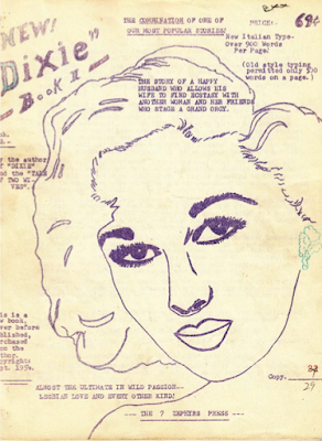 7 Zephyrs Press was a primitive smut publisher working just over the border in Juarez and Tijuana, Mexico. By 1955, the modest business had published well over 200 individually numbered titles. Each had primitive drawings to illustrate the deviant goings on. Real collectors items. The company also ran a lending library! Not a collector? Buy one, read it and return for another. Each title seems to have been "cranked out" in editions of 100 or so. Historians are aware that technological inventions are first used to spread erotic content...in this case, the mimeograph machine.
