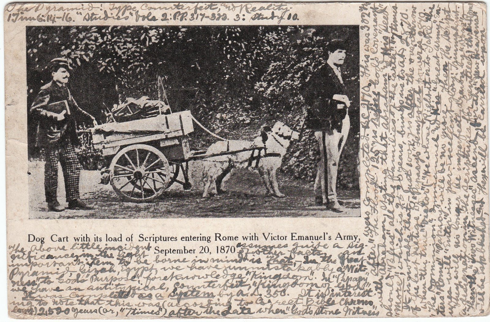 Hypergraphia is a disorder in which a compulsive need to write text takes over a person. It appears this fellow has filled a cart with his writings, and is on his way to deliver them to Rome.